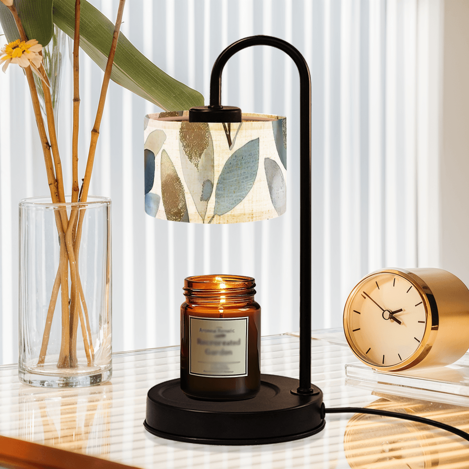 Dimmable Candle Warmer Lamp 4 Bulbs Gold Watercolor Leaves Linen Shade for Scented Wax Candles Home Decor Custom in Stock MOQ 1