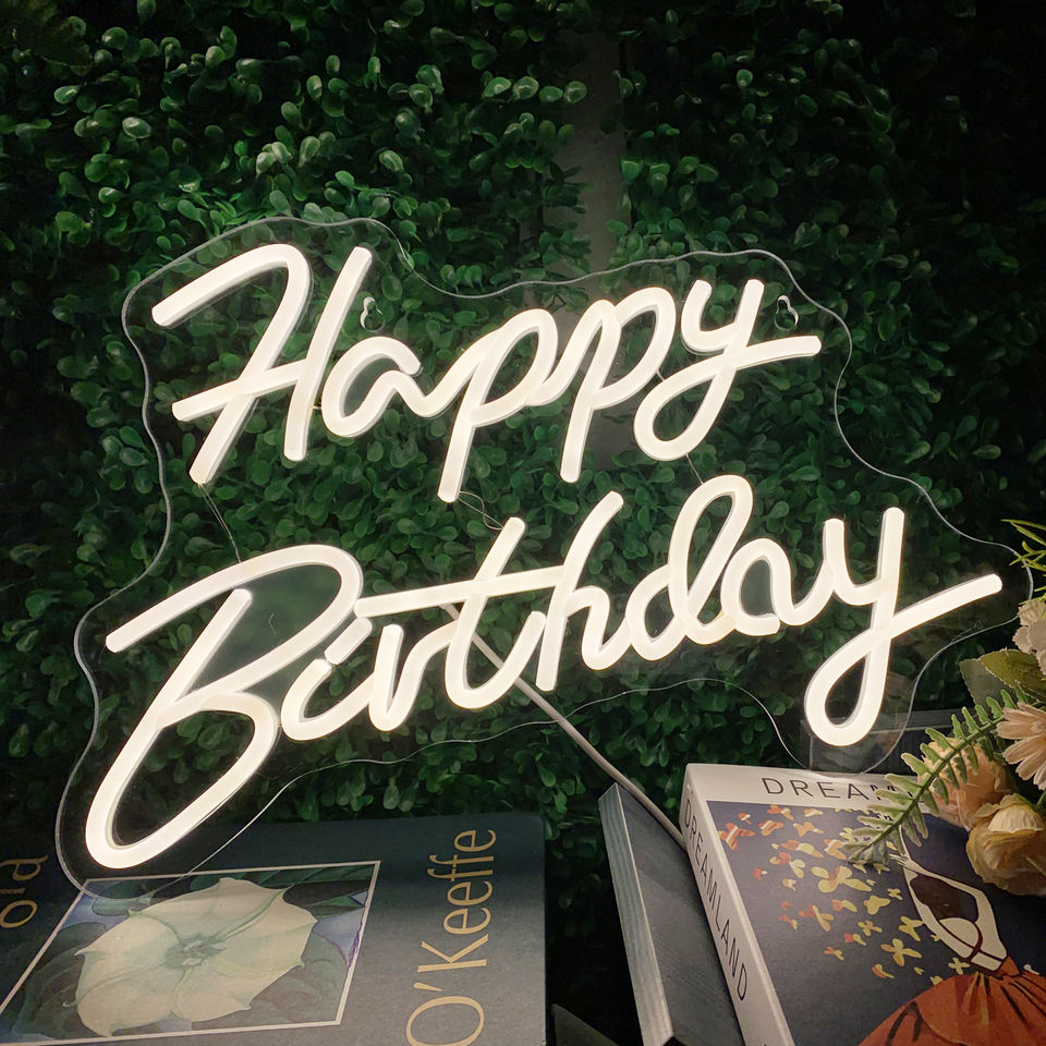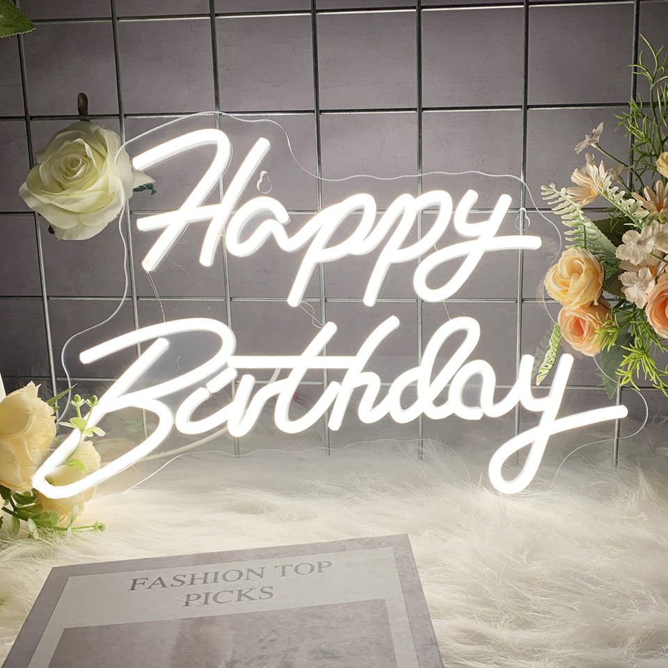 Dimmable LED Neon Sign Happy Birthday Wedding Party Decor DC Powered Wall & Party Decor Any Age Celebration