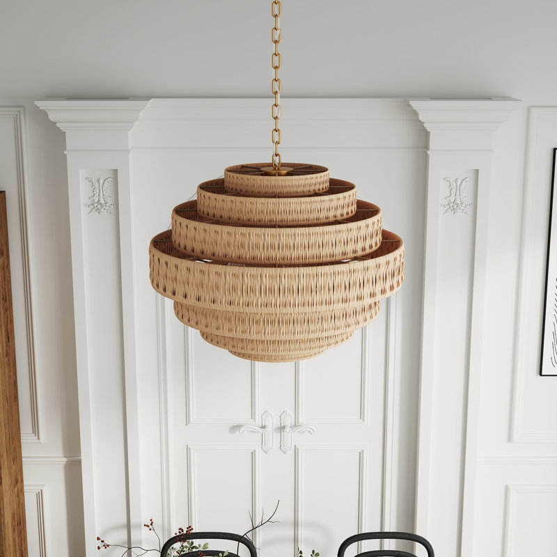 Dimmable Vintage Pendant Light Fixture 5-E26 Bulbs 30.71 Inch Oversize Farmhouse Boho Paper Shade Turned Tool