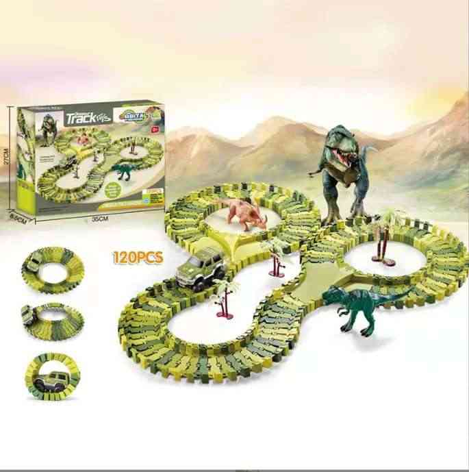 Dinausar Large Size Luminous Track Set Mega Creative DIY Building Blocks Construction Toy for Kids Made of Durable Plastic