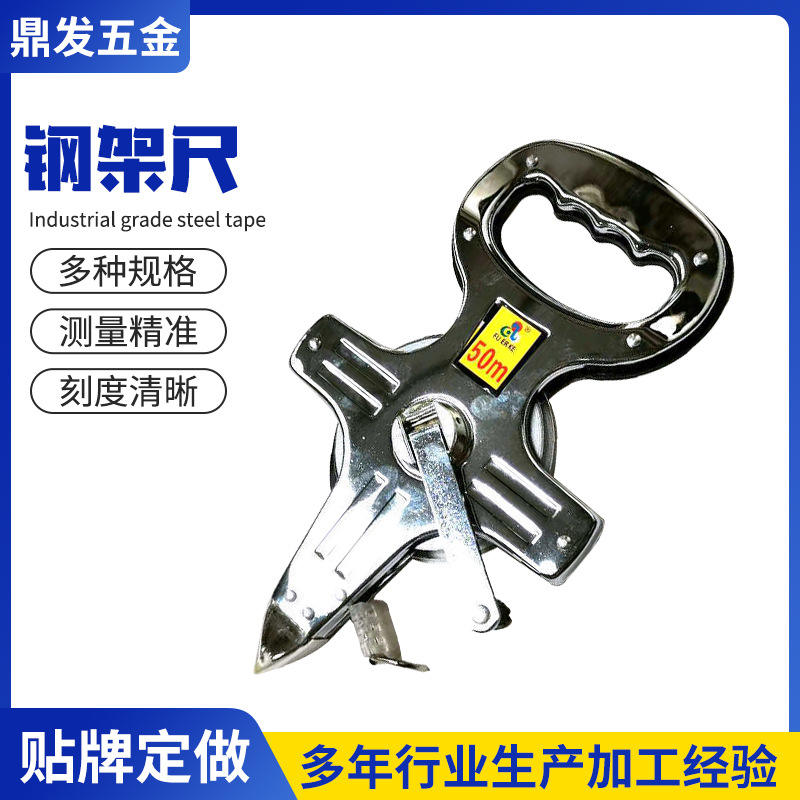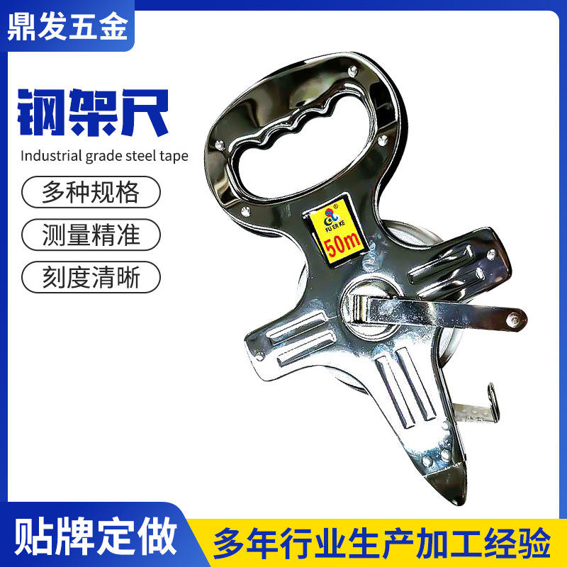 Dingfa Hardware Steel Tape Measure 50m Rolling With Stand Lever Lock Manual Return Metric Measuring Tool For Engineering