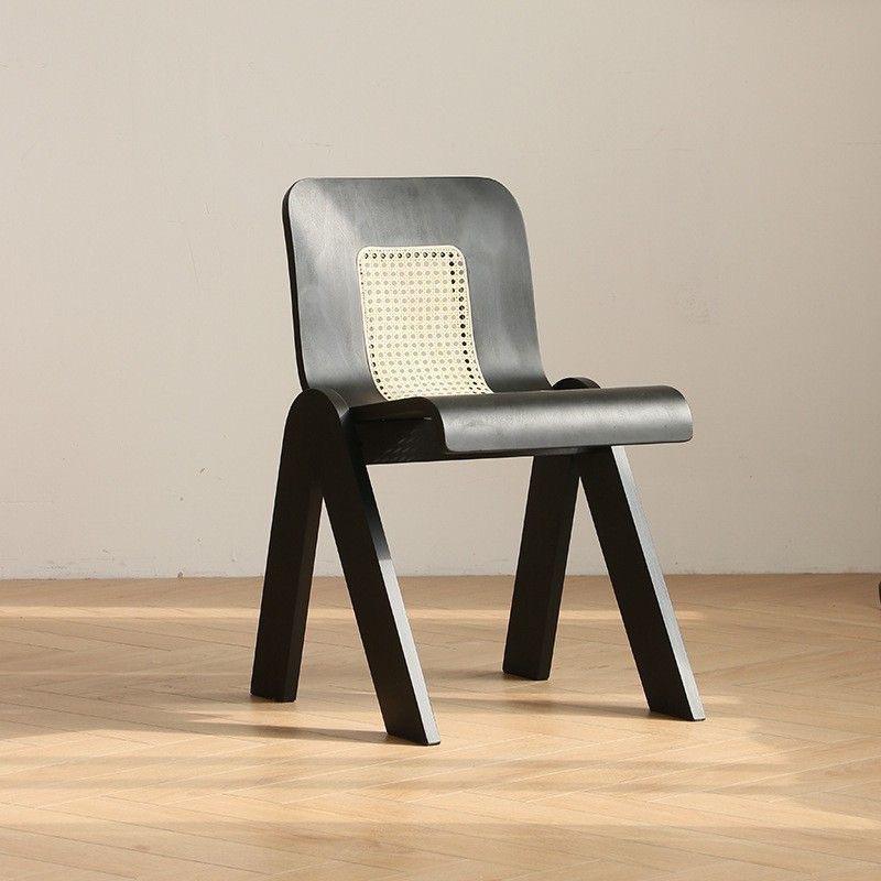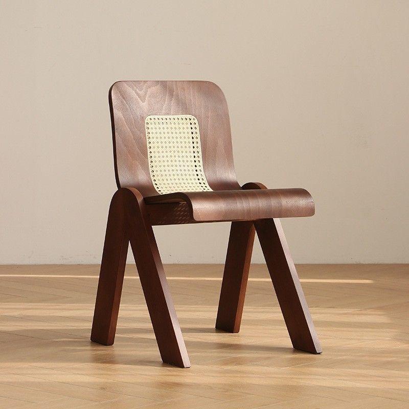 Dining Chair Solid Wood Backrest Rattan Seat Walnut Color For Home Office Use