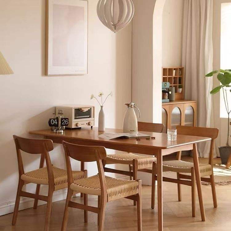 Dining Chair Solid Wood Rope Woven Backrest Minimalist Design For Home Use