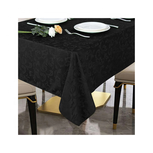 Dining Room Centerpiece 100% Cotton pure Black Embroidered Table Cloth 250 GSM 10 Seater Bohemian Style India OEM ODM Decor
