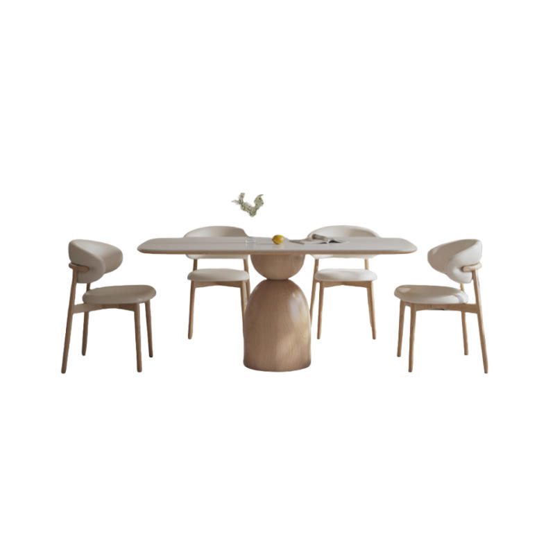 Dining Table And Chair Set 6 Piece Matte White Solid Wood Minimalist Nordic Style For Dining Room