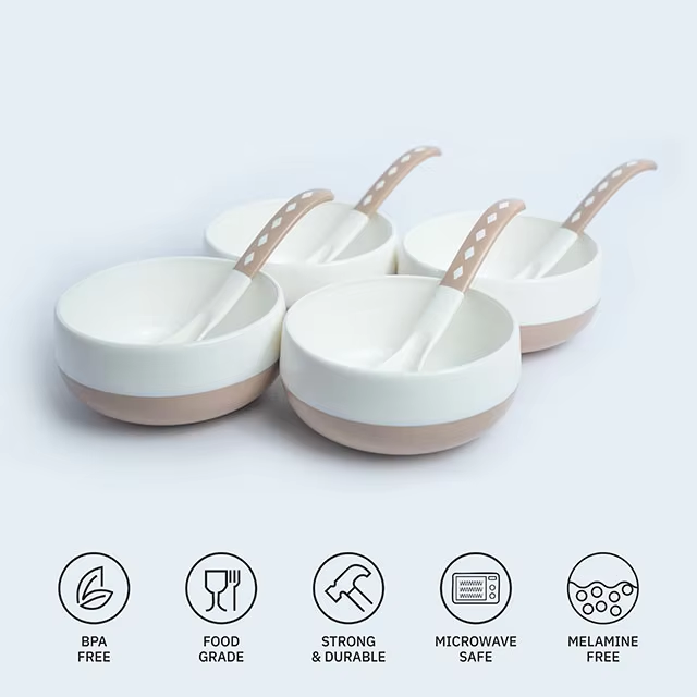 Product name:Round Soup Bowl Beige with Spoon 250ml