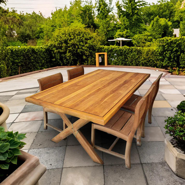 Patio Dining Set Made of Solid Teak Wood with natural wood finish and High Quality for Outdoor