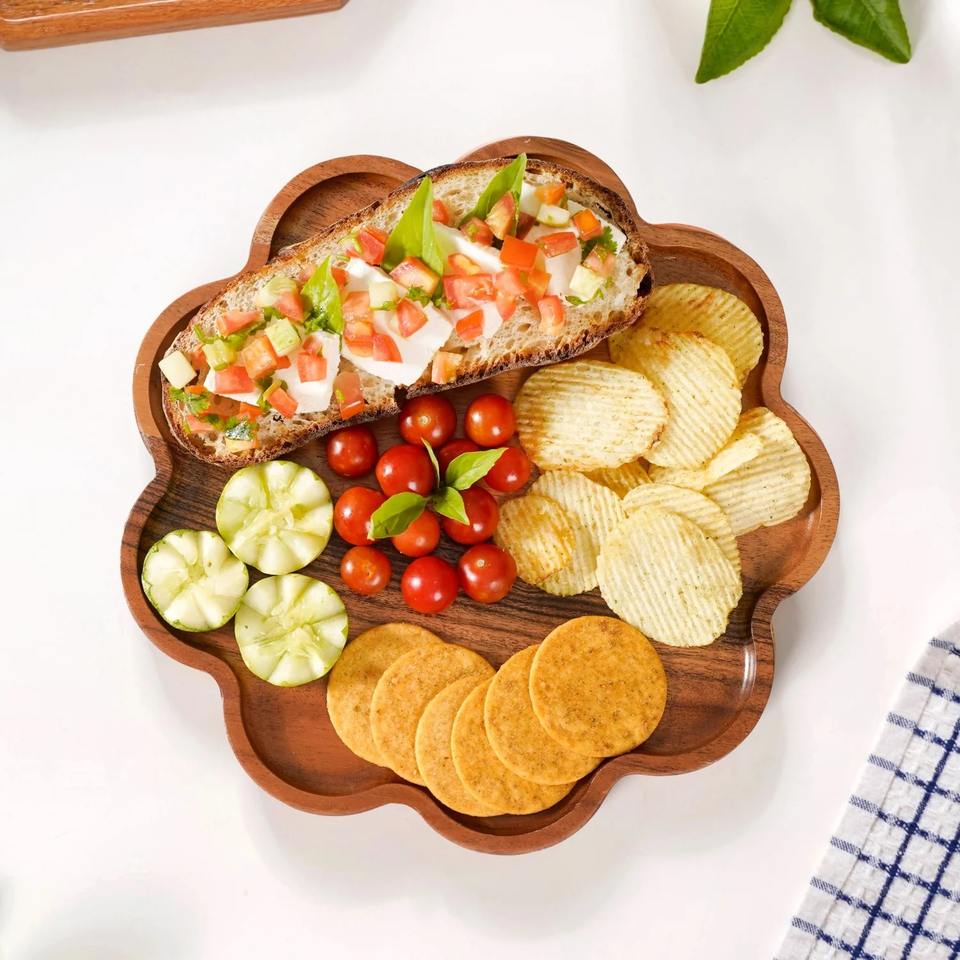 Dining table serving plate Flower Shaped Acacia Wood Serving Platter Plate Dinnerware Tableware Wooden Plate Set Wooden