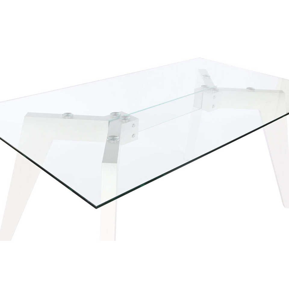 Dining table with glass top and MDF, 160x90x75 cm, tempered white