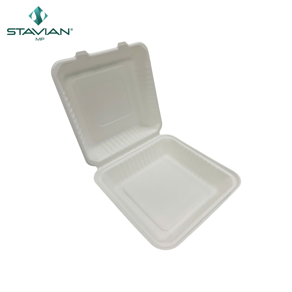 Dinnerware Biodegradable Customized Logo 8x8 Inch 1070ml Plant Based Fibers Bagasse Box Clamshell Takeaway Box Disposable