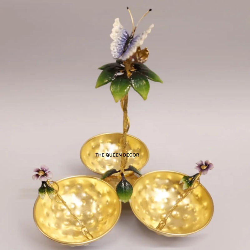 Dinnerware Brass Metal Joint Leafy Designer Round Shape Gold Antique Finish Fancy Stylish Serving Bowl
