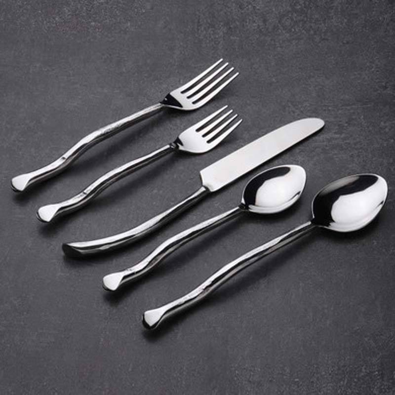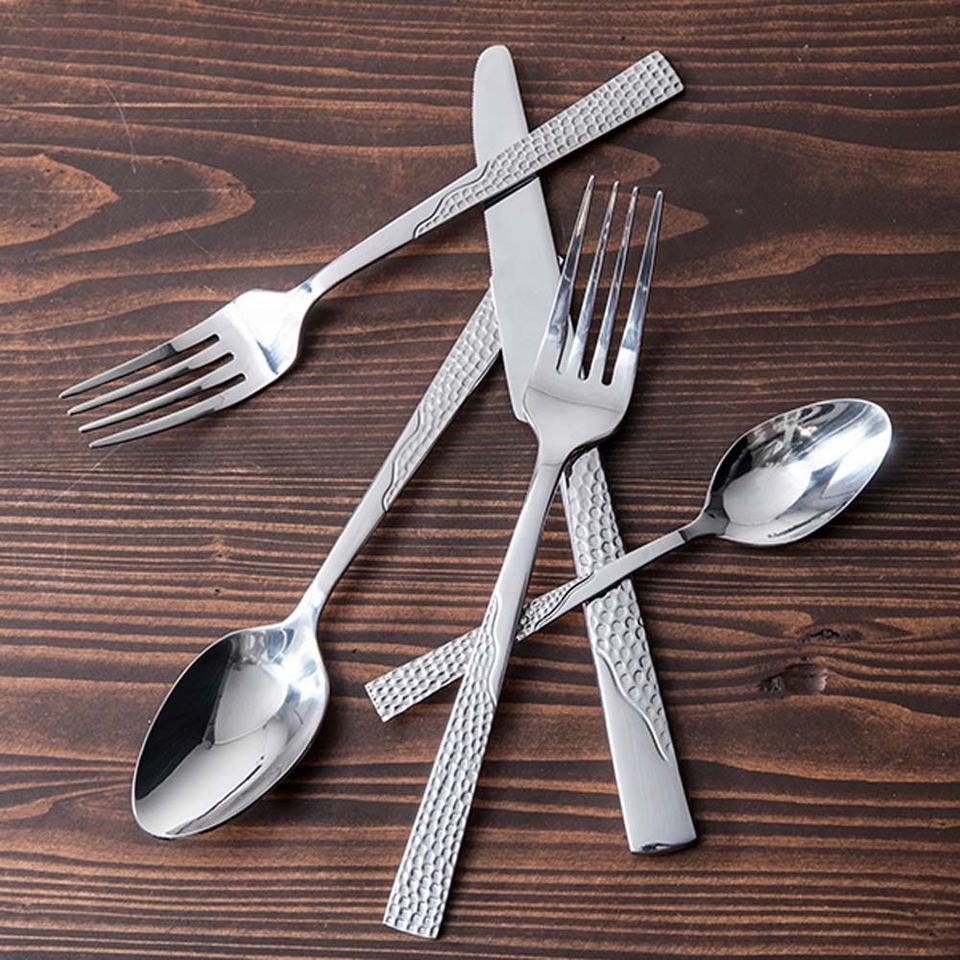 Dinnerware Luxury Silver Metal Flat Light Hammered Handle Cutlery Laser Pattern Stainless Steel Cutlery Flatware Wedding Set