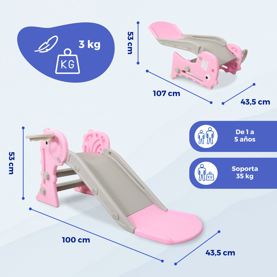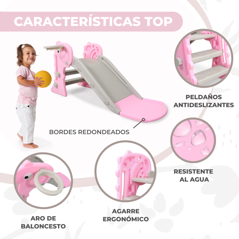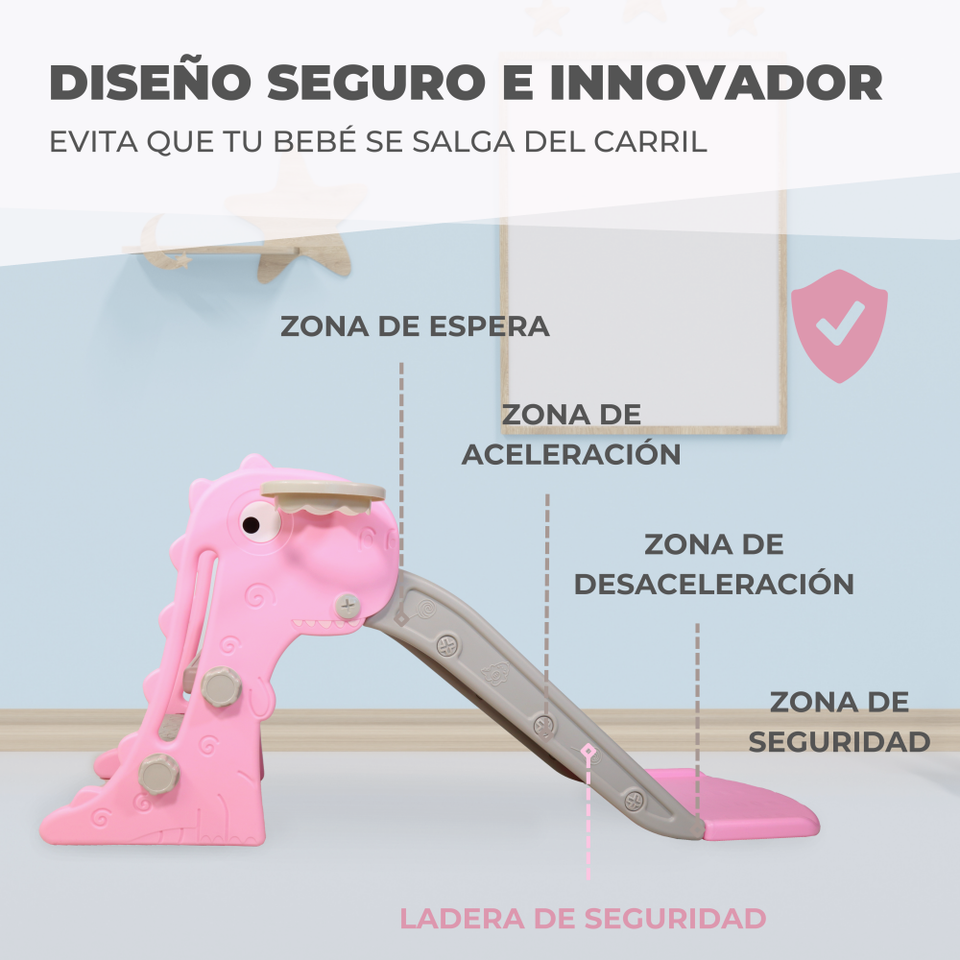 Dino Mobiclinic Pink Toy Slide for Children Foldable with Basket and Ball Rounded Edges Non-Slip Steps Max Weight 35 kg