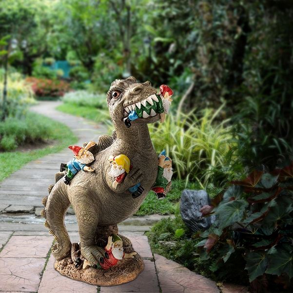 Dinosaur Eating Gnomes Garden Statue Outdoor Art Sculpture for Patio Christmas Holiday Halloween Accent Decorative Object Crafts