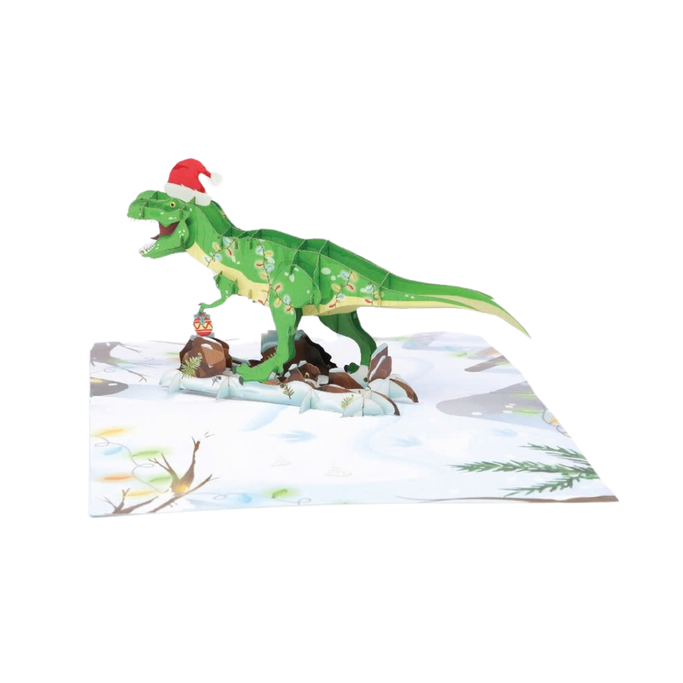 Dinosaur Xmas 3D Pop Up Greeting Card with Envelope Unique Handmade Greeting Card Special For Holiday Celebration
