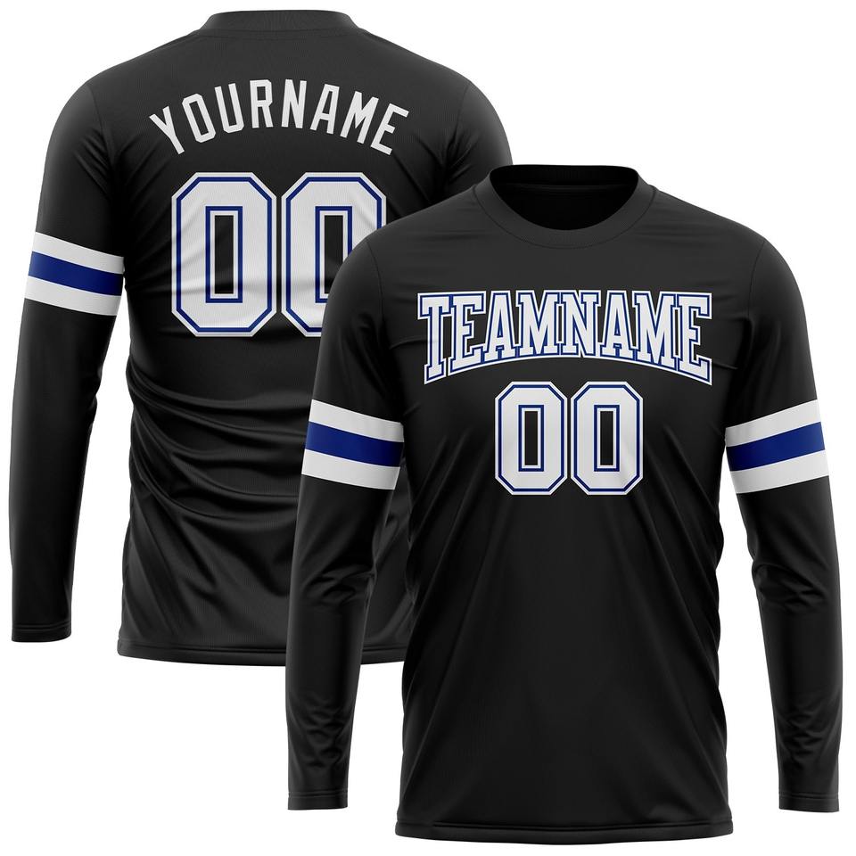 Direct Engro Sportswear Wholesale Custom Black White-Royal Long Sleeve Performance T-Shirt