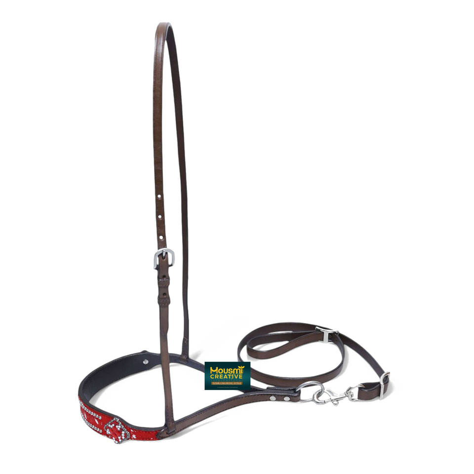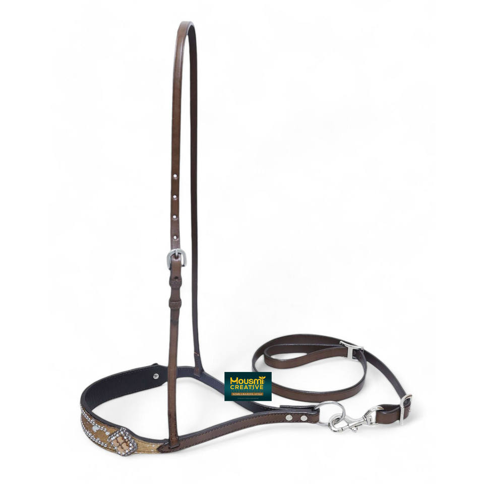 Genuine Cowhide Leather Horse Tie-Down Noseband With Strap