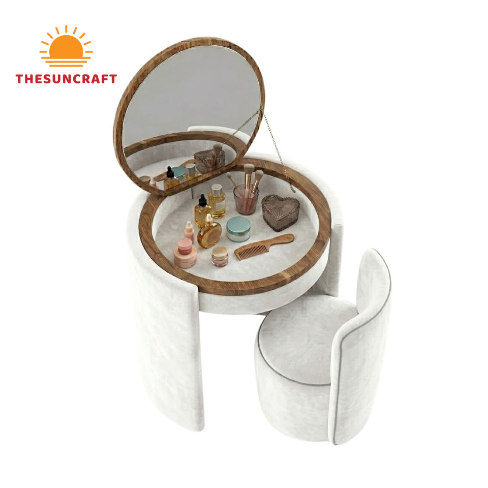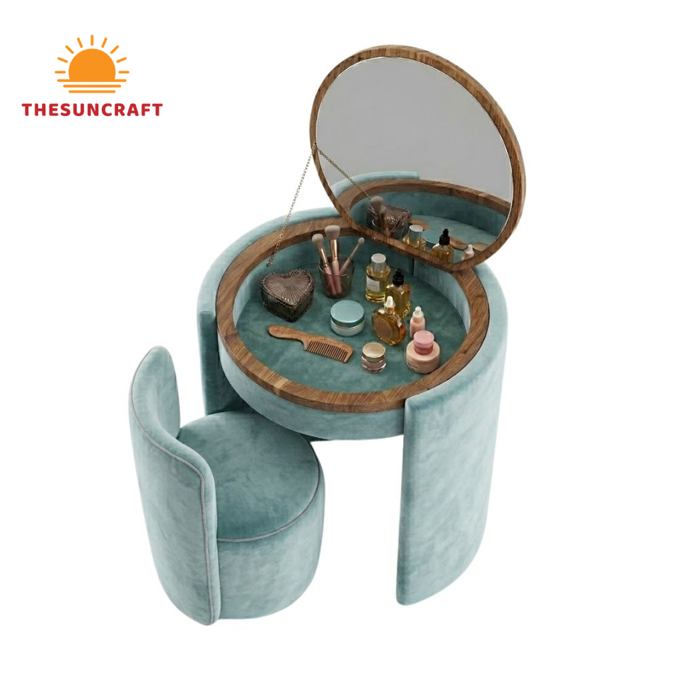 Direct Factory Corner Vanity Set for Girls - Modern Oak Wood Makeup Table with Mirror & Chair Cheap