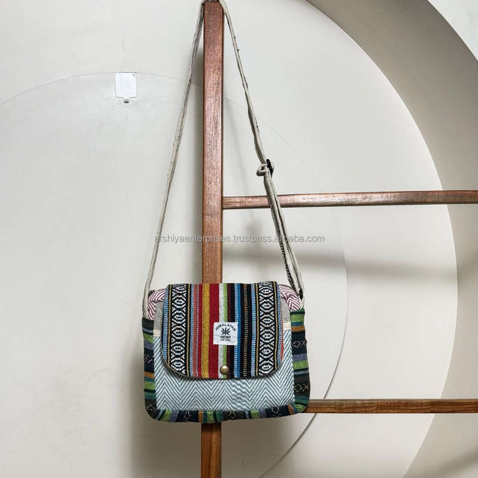 Direct Factory Himalayan Hemp Sling Bag Eco Friendly Handmade Crossbody Bag Small Travel Purse for Women's with Adjustable Strap