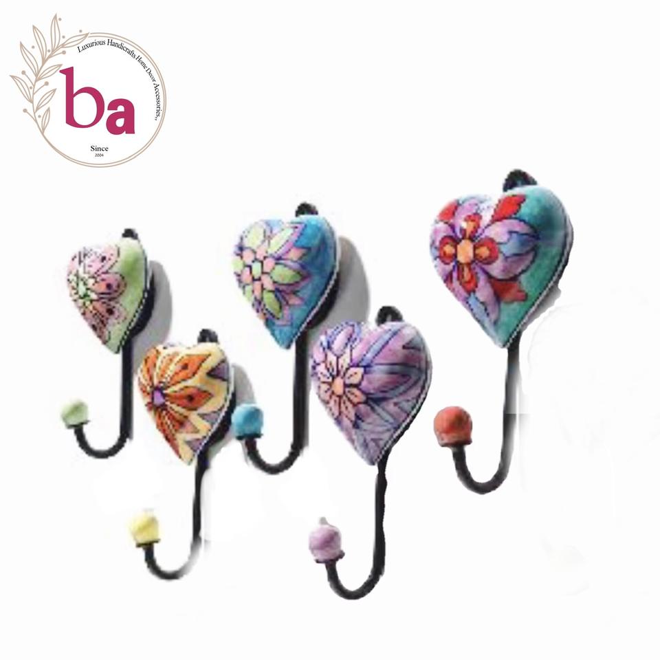 Direct Factory Price Metal Coat Hanger Wall Hooks Ceramic Heart Multifunctional Clothing Hooks Iron Adhesive Features-[CIH 132]