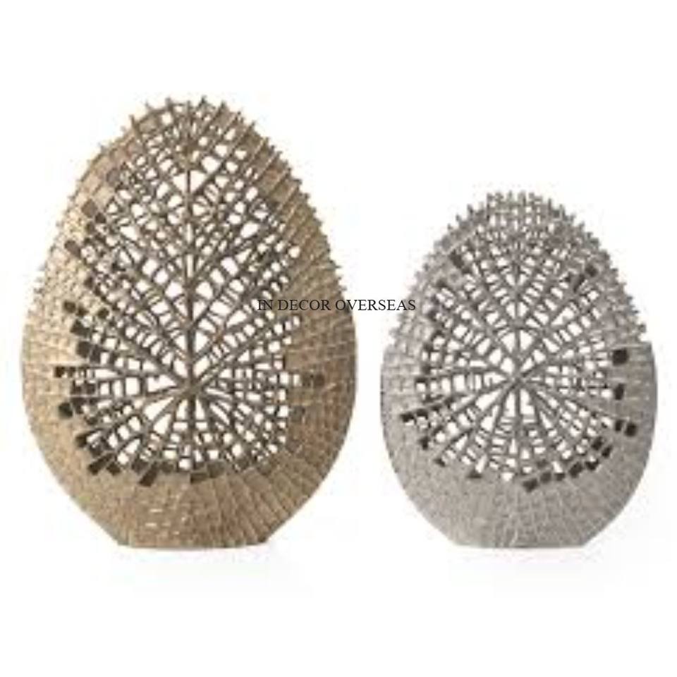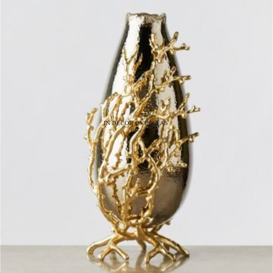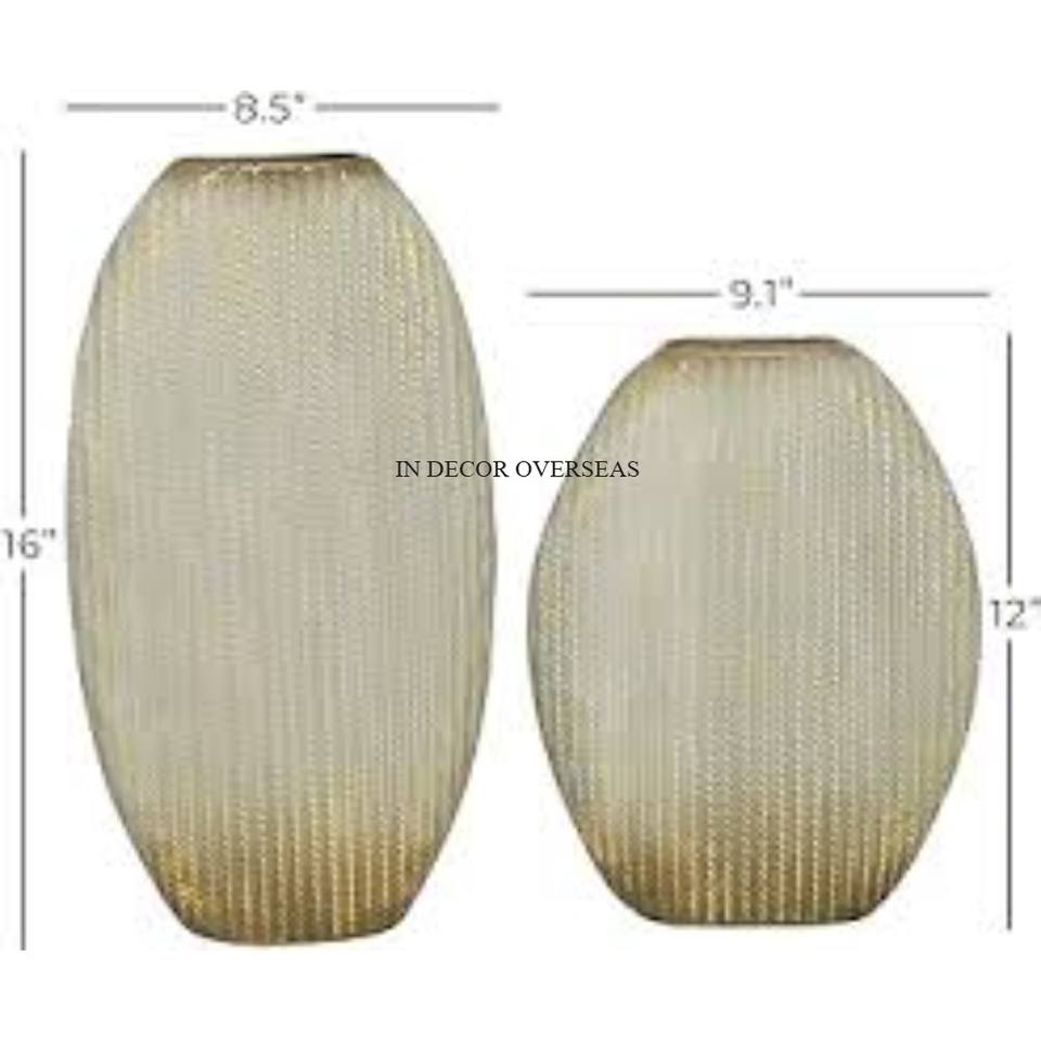Direct Factory Supply Antique Texture Designer White And Gold Color Finished Set Of 2 Heavy Duty Metal Flower Vase From India