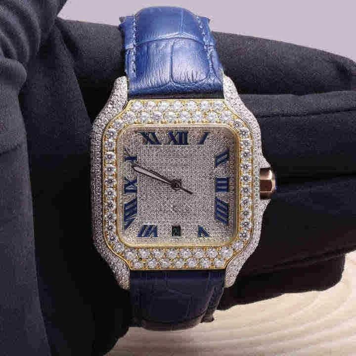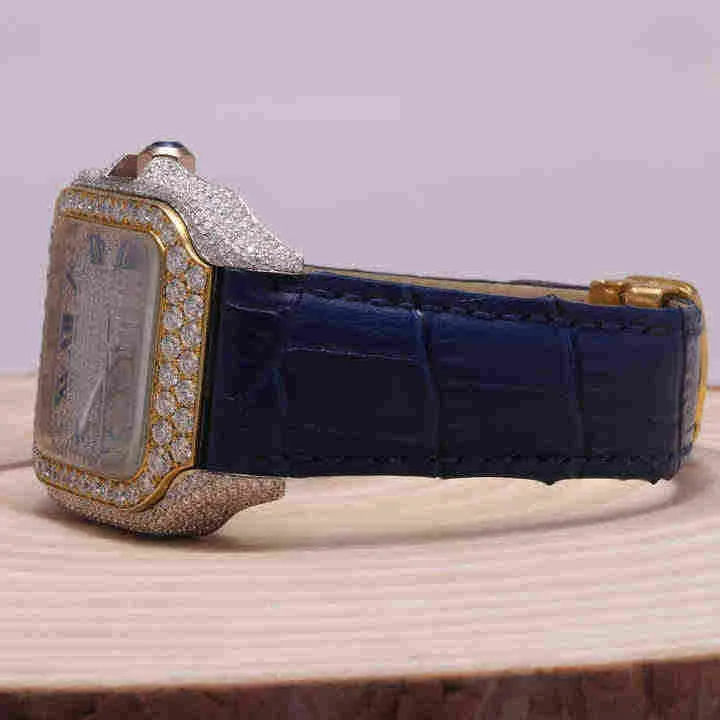 Direct Factory Supply Blue Leather Iced Out Diamond Wrist Watch for Office Party and Evening Wear Available for Export Price