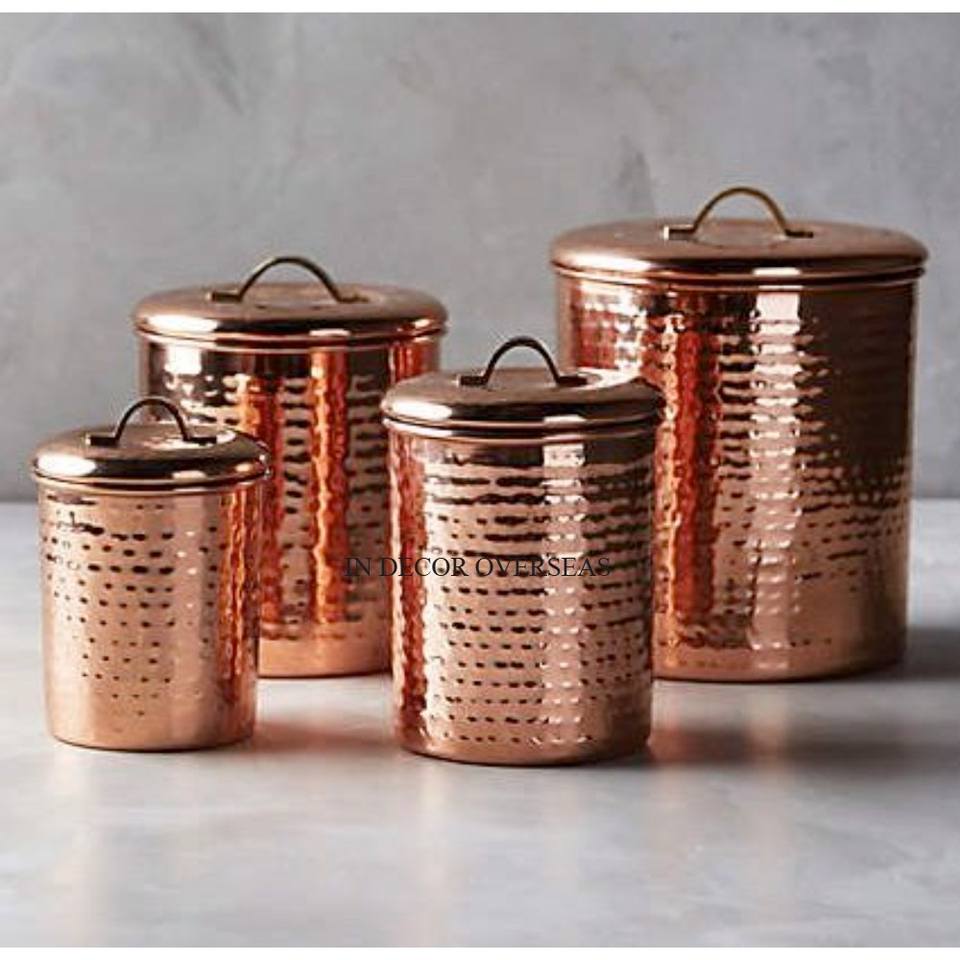 Direct Factory Supply Copper Antique Finished Hammered Texture Round Shape Metal Food Items Storage Kitchenware Usage Boxes