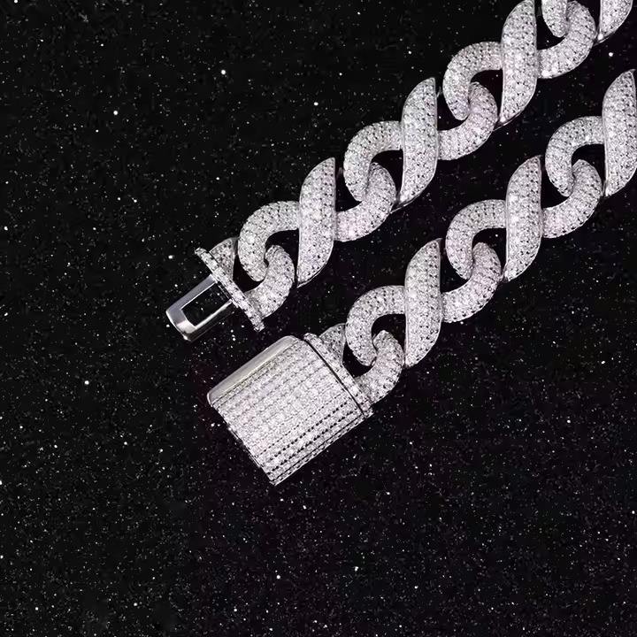 Direct Factory Supply Hiphop Cuban Chain S925 Sterling Silver White Gold Plated Fine Chains Necklaces for Men