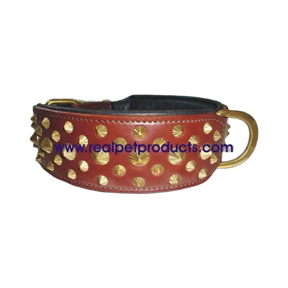 Manufacturer High Quality Heavy Duty Thick Leather 1.5 Inch Wide Strong Durable Brass Hardware Custom Logo Pet Dog Collar