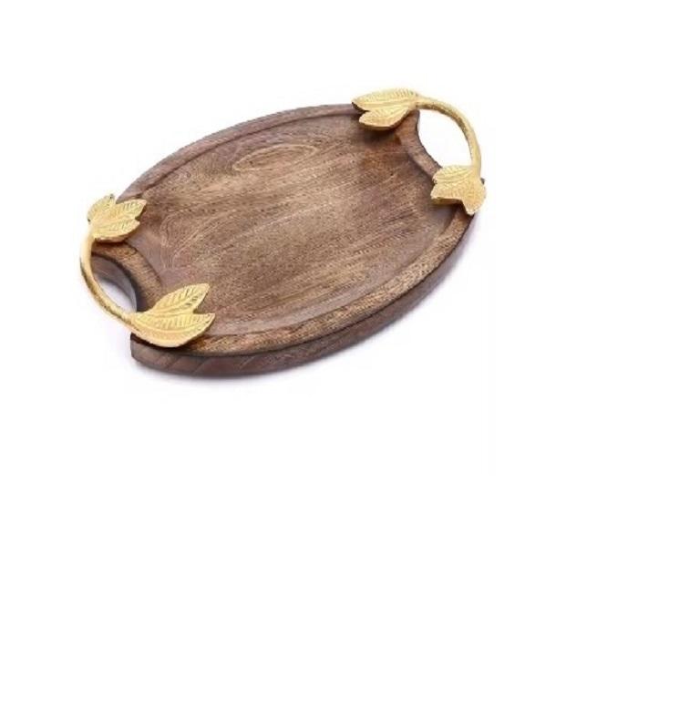 Direct Factory Supply Large Rectangular Wooden Serving Tray with Metal Handles Multipurpose Kitchen Trays Food Decorative Trays