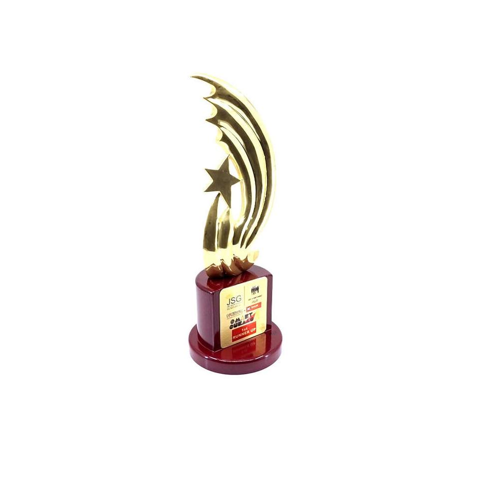 Premium Metal Designer Star Trophy, On A Wooden Base