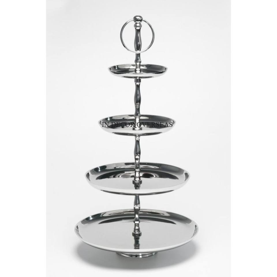 Direct Factory Supply Silver Color Finishing Shiny Polished 4 Tier Heavy Duty Metal Made Cake Display Stand In Impressive Price
