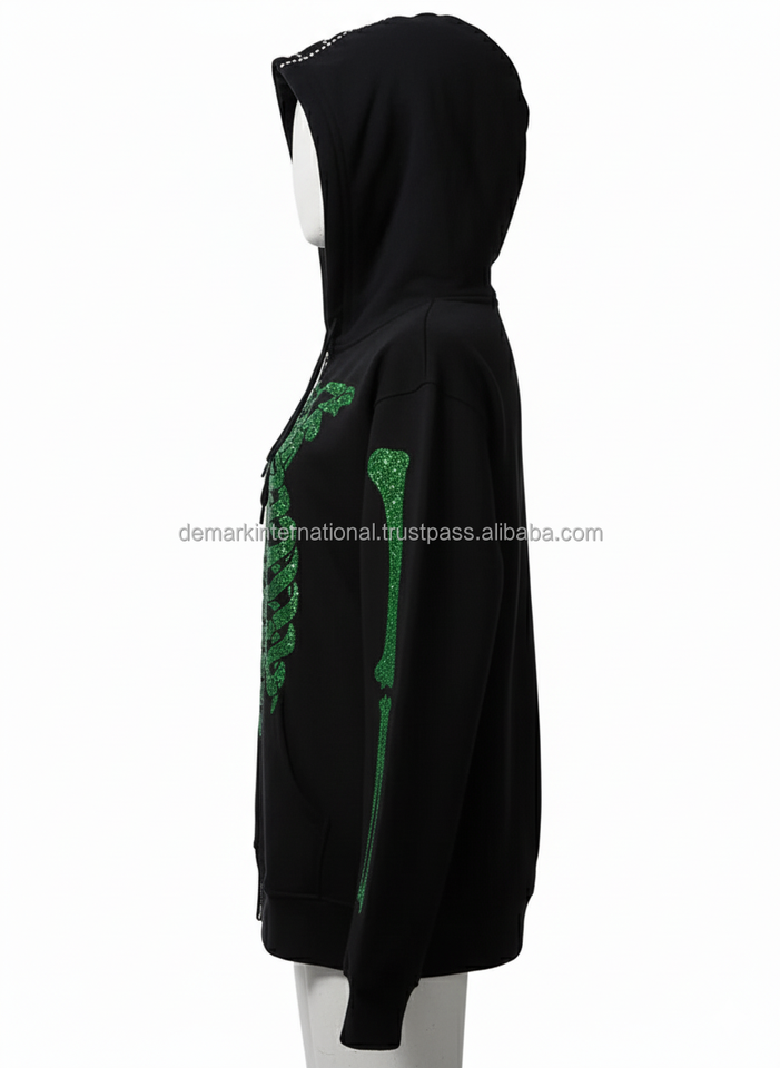 Direct Factory Wholesale Custom Brand Men's Pullover Hoodie Solid Rhinestone Fleece Fabric-Polyester/Cotton Material Washed