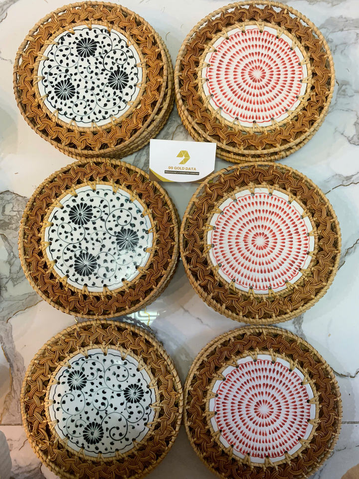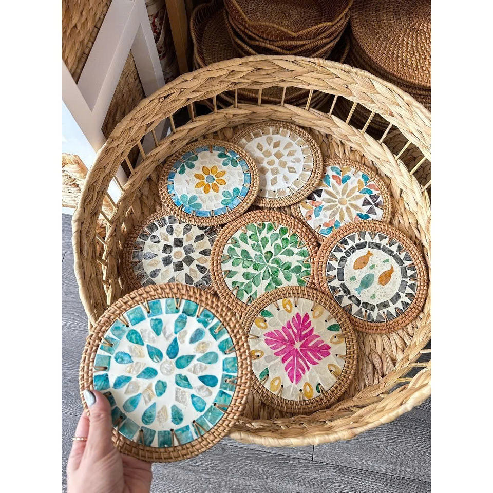 Direct Factory Wholesale Custom Logo Vietnam Handmade Round Rattan Placemat with Mother of Pearl Mosaic Dining Table Decoration