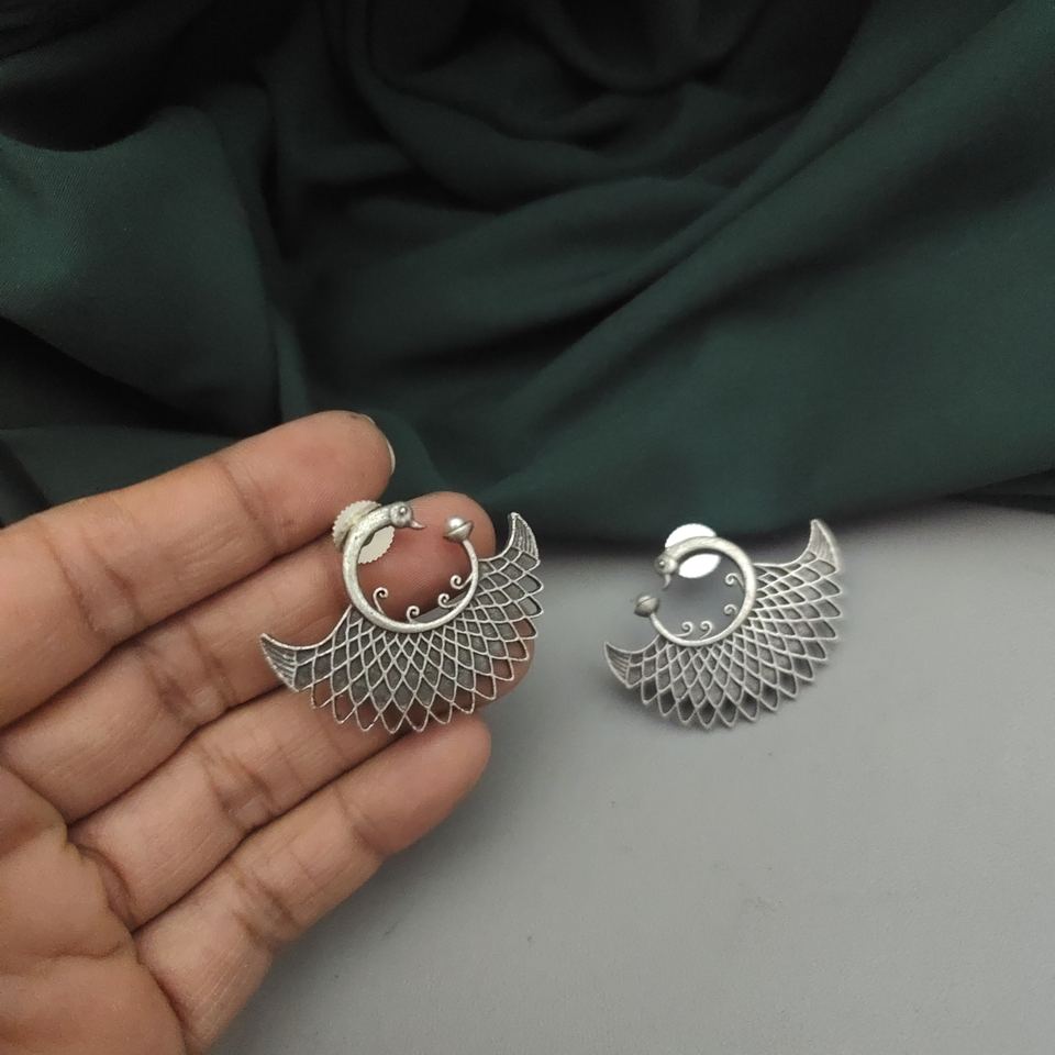 Direct Indian Supplier Best Selling High Quality High Grade SUHASINI Oxidised Silver Peacock Stud Earrings Geometric Shape