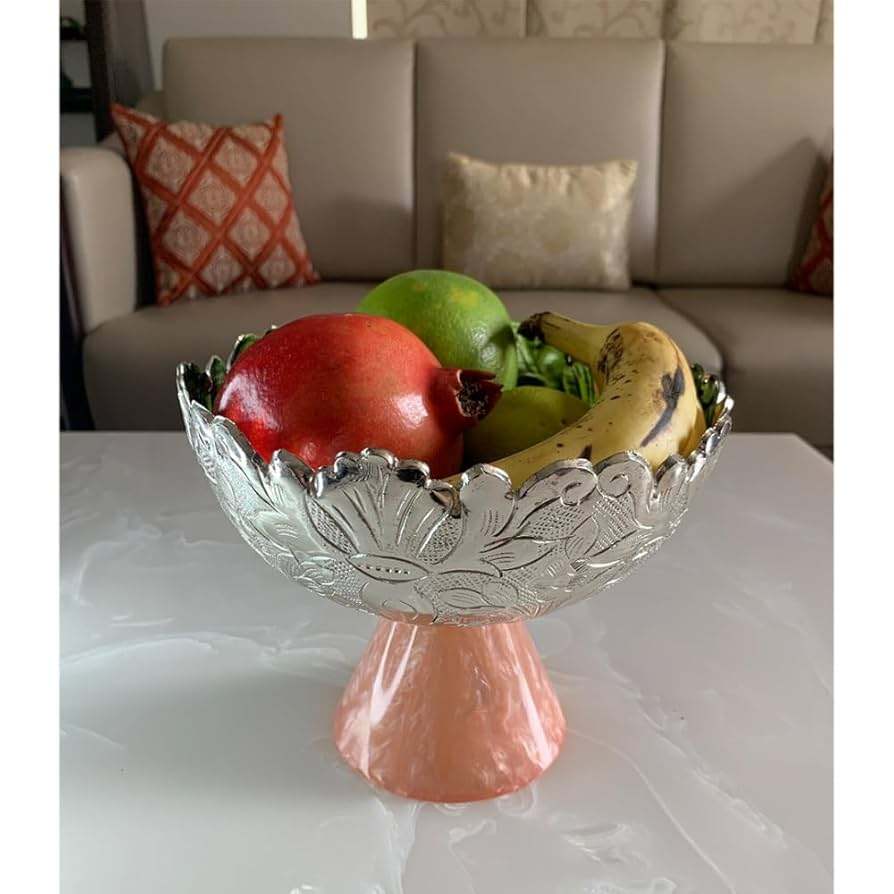 Direct Indian Supplier Handcrafted German Silver Plated Resin Art Deco Fruit Bowl Polished Handmade Decorative for Storage Use