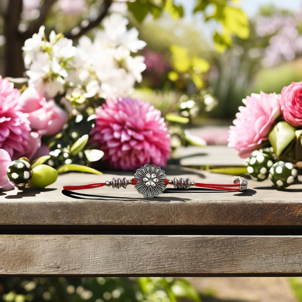 Oxidised Silver Floral Rakhi for Brothers Handcrafted Spiritual Charm