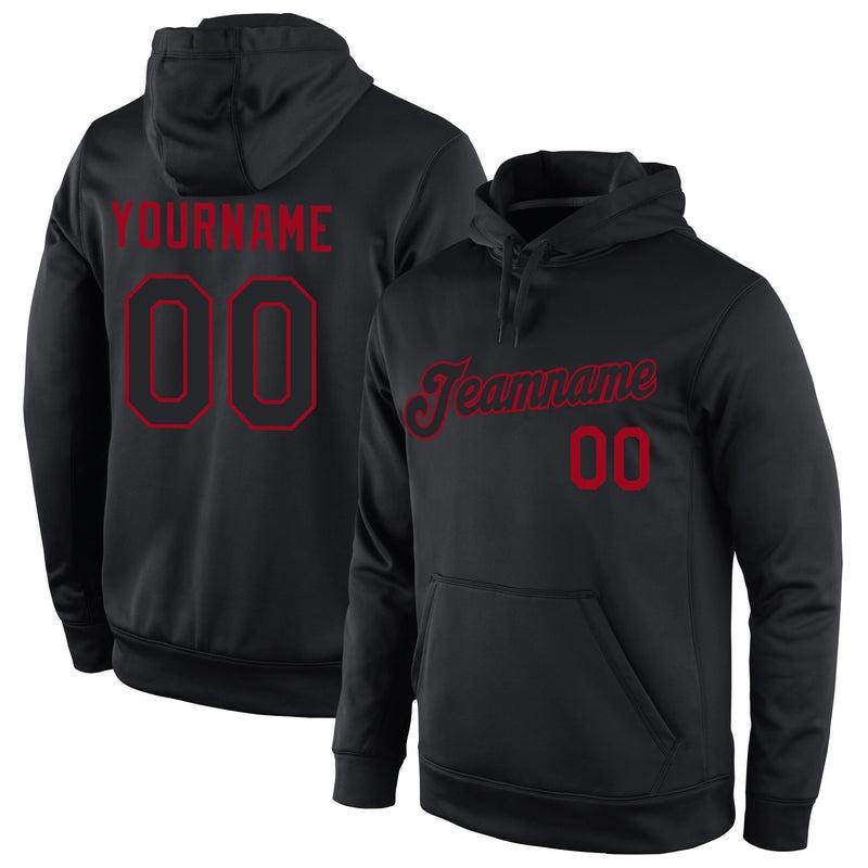 Direct Industry Wholesale 3D Embroidered Custom Stitched Black Black-Red Sports Pullover Sweatshirt Hoodie
