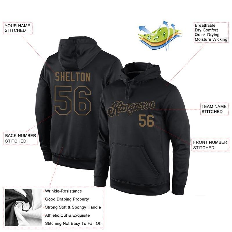 Direct Industry Wholesale 3D Embroidered Custom Stitched Black Black-Old Gold Sports Pullover Sweatshirt Hoodie