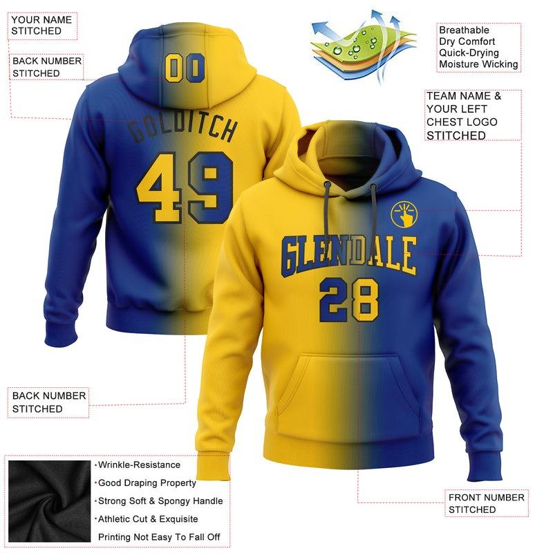 Direct Industry Wholesale 3D Embroidered Custom Stitched Royal Yellow-Black Gradient Fashion Sports Pullover Sweatshirt Hoodie