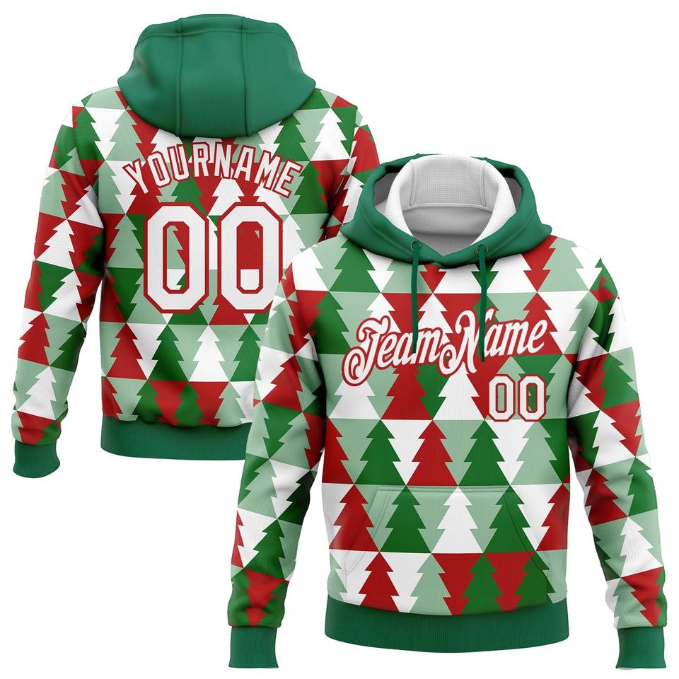 Direct Industry Wholesale 3D Embroidered Custom Stitched Green Red-White Christmas 3D Sports Pullover Sweatshirt Hoodie