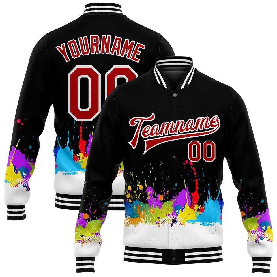 Direct Industry Wholesale Casual Winter Custom Medium Pink White-Pink Flamingo 3D Bomber Full-Snap Varsity Letterman Jacket