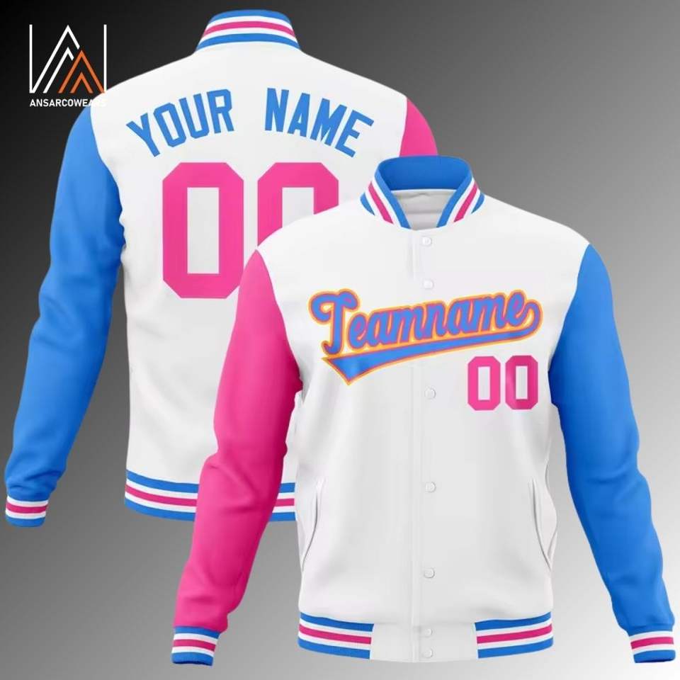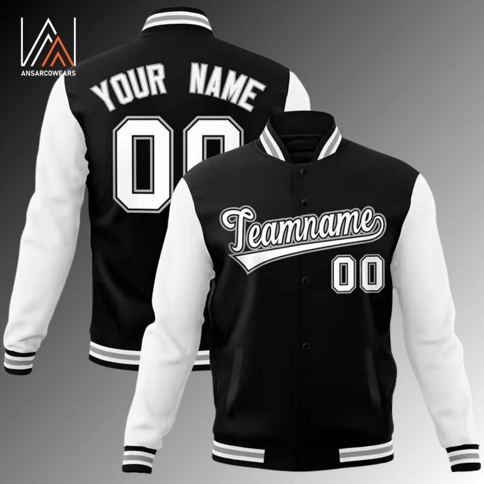 Direct Industry Wholesale Casual Winter Custom White Black-Orange Bomber Full-Snap Varsity Letterman Two Tone Varsity Jacket