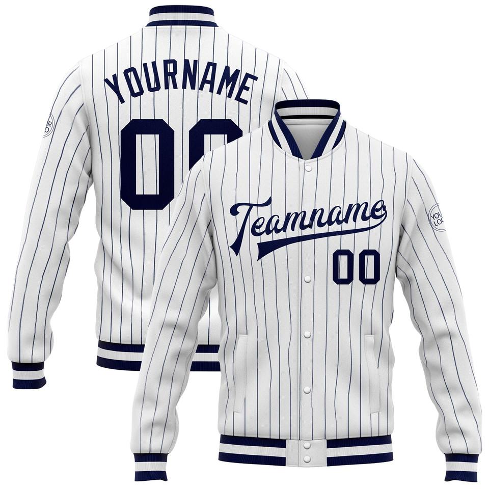 Direct Industry Wholesale Casual Winter Custom White Navy Pinstripe Navy-White Bomber Full-Snap Varsity Letterman Jacket