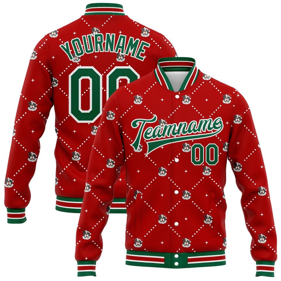 Direct Industry Wholesale Casual Winter Custom Red White Christmas 3D Bomber Full-Snap Varsity Letterman Jacket