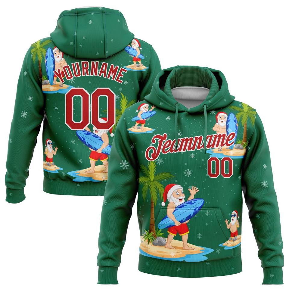 Direct Industry Wholesale Custom Stitched for Green Red-White 3D Tropical Christmas Surfing Santa Sports Sweatshirt Hoodie