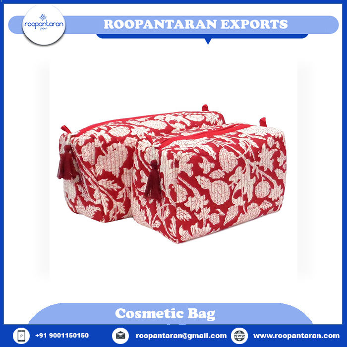 Direct Manufacturer's Best Selling Pure Cotton Travel Cosmetic Bags Hand Block Printed for Makeup Storage with Zipper Closure