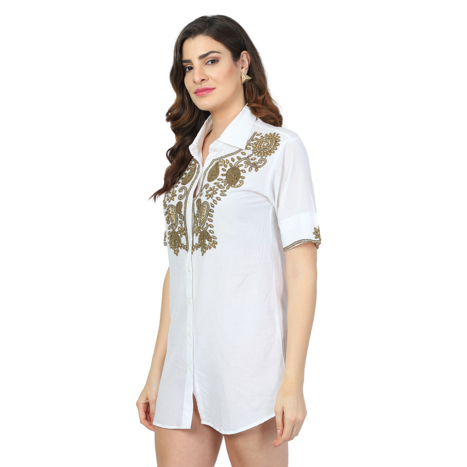 Direct Manufacturer's White Cotton Beaded Dress for Adults Girls Formal Ethnic Style for Party Wear Casual Indian Pakistani