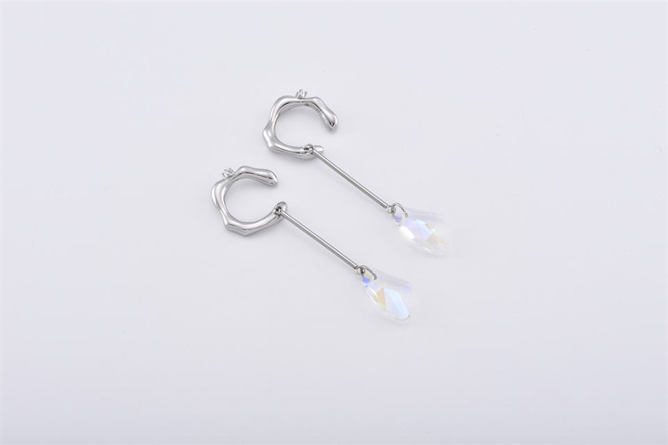 Direct Supply Women's Rustic Casual Designer Silver Hoop Earrings with Knotted Chain Stainless Steel Jewelry for Wholesale