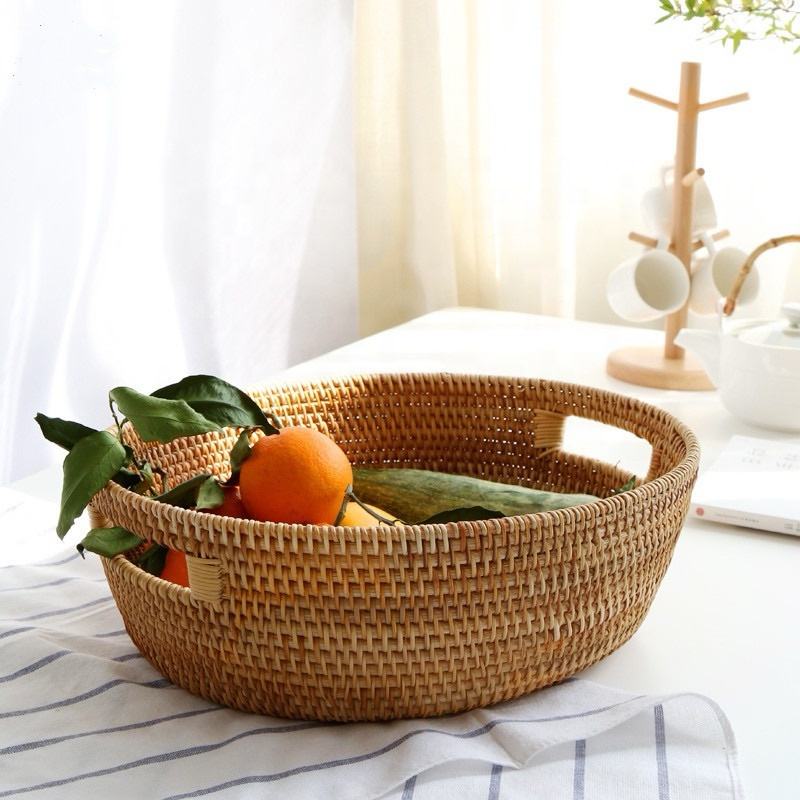 Direct Wholesale From Vietnam Best Price Bamboo Rattan Serving Tray Table Decoration Serving Plate Circle Shape Storage Basket